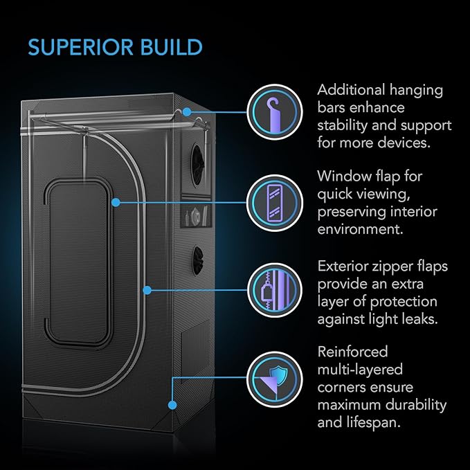 - Advance grow tent features lab-tested reflective Mylar for maximum light efficiency, taller window for clear visibility, and enhanced light-blocking design.
