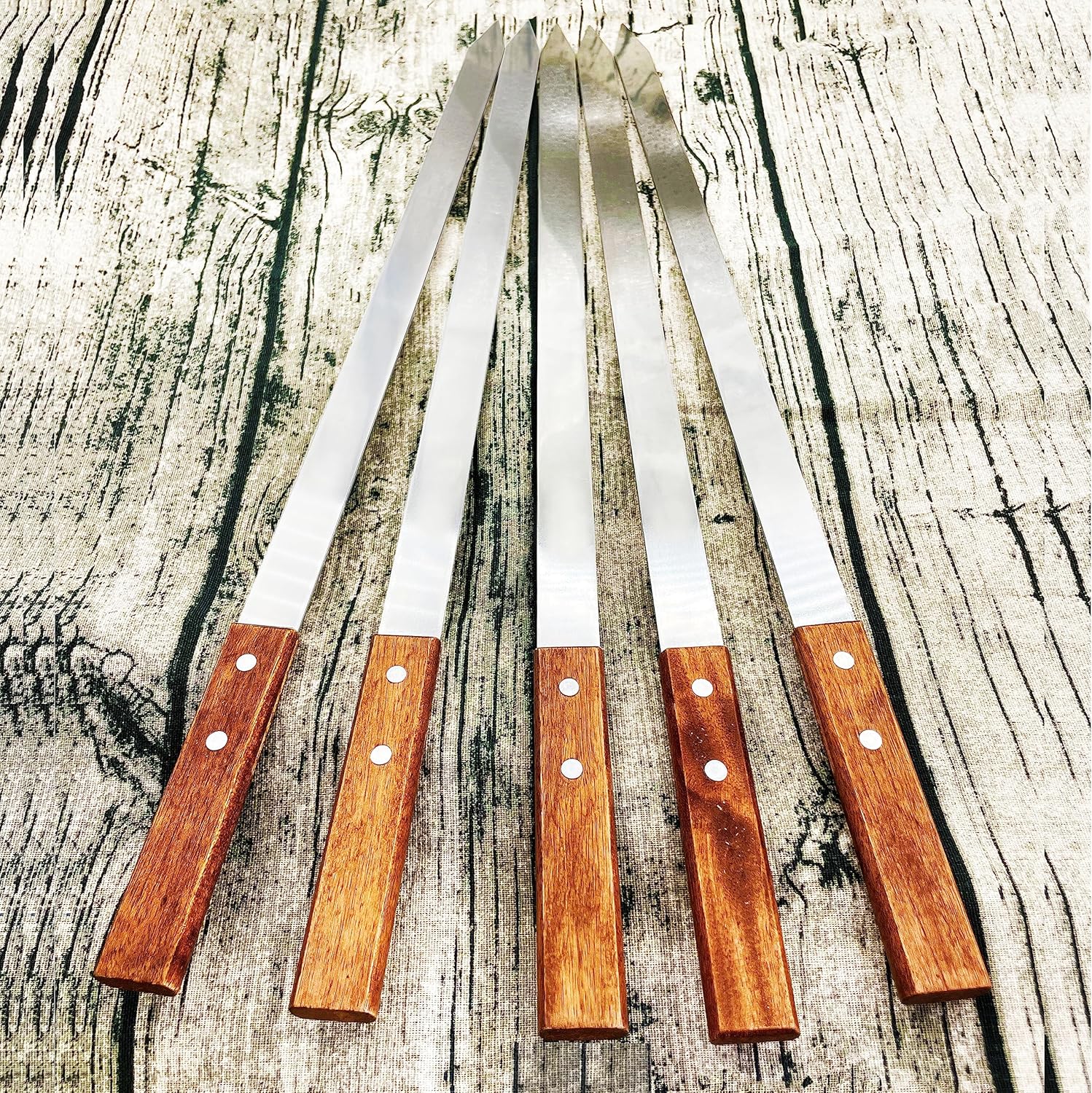 - 【PERFECT DESIGN】length is 26.6'',width (blade) is 0.91'',thickness is 0.078 '',large blade,The kabob skewers can keep your food from spinning/rolling.Skewer is so wide,heat well distributed during baking.Kabob sticks are solid and thick,they are hard and durable,Extra long and wide,thick and flat design,Suitable for barbecue large pieces of food,can grill a lot,and can stop the meat from rotating on the skewer.Wider and solid oak wooden handle,comfortable to hold,it also can protect your hands.