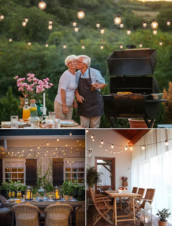 - 150 Feet LED String Lights: G40 outdoor lights come with 77 (2 spares) clear G40 LED bulbs. Each bulb is 2 feet apart for a total length of 150 feet. It supports an end-to-end connection of up to 9 strings, allowing you to customize the length you need. These lightweight and convenient LED patio lights are easy to carry and store