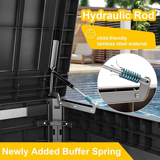 - EASY TO USE: The deck storage box is designed for convenience with built-in handles on both sides, allowing easy lifting and movement. Plus, for added security, you can install a password lock/small lock (not included) on the top cover