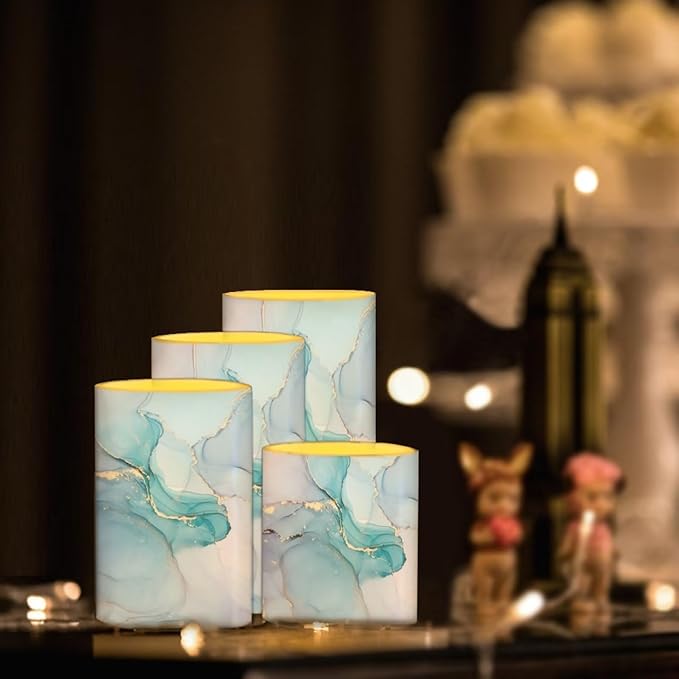 Flameless LED Candles Electric Candles with Remote Timer Color Changing Control Long Lasting for Home Table Centerpiece Decoration Pack of 4, Marble Blue Purple