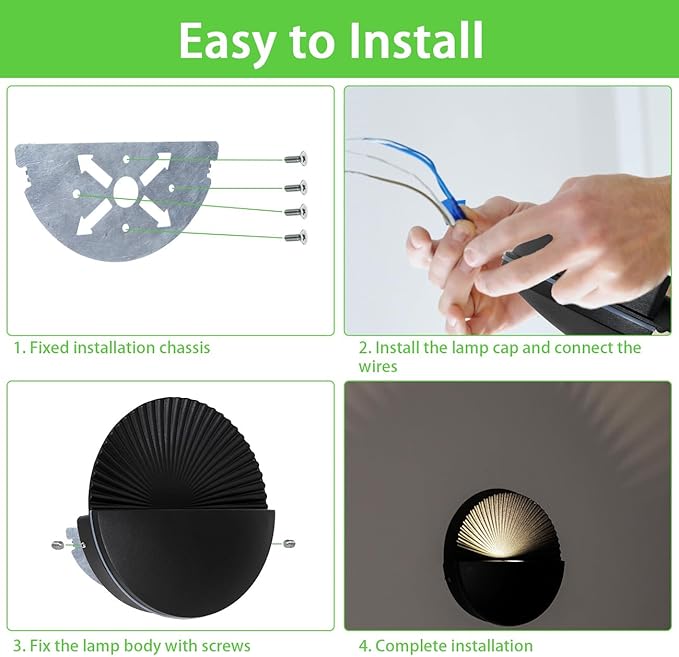 - 【Easy to Install】Designed with back mounting plate,easy to install and remove in daily. Simply install the mounting plate on wall or wood fence then snap it on, you can install these led wall lights to anywhere like yard,pool,courtyard,proch,stair,also a perfect addition to the shadowy corner in your backyard