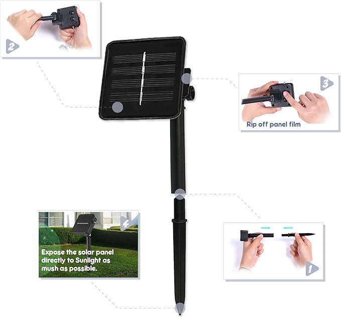 - 【8 Lighting Modes】 The solar panel offer 8 different blink modes. In rainy days, with low batteries, the panel would stop lighting early to save energy for the next night.