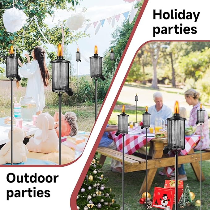 - 【Decoration & Entertainment】The outdoor torches ideal for backyard decoration and lawn lighting. It is very suitable for terrace tropical theme parties, beach or jungle theme parties, outdoor concerts and Christmas Party. Make your party romantic and warm.
