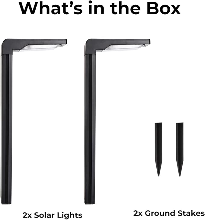 Techko Outdoor Solar L-Shaped Path Lights (2-Pack), Modern Minimal Design, Waterproof IP65, Garden Lights for Landscape, Yard, Walkway, Pathway,Matte Black