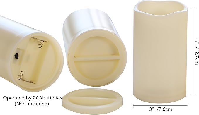 - Easy to use with timer. There is a built-in daily cycle timer inside each battery LED candle. Once the pillar candle is turned on, the timer starts to work. The LED flameless candle stays on for 6 hours and turns off automatically for the next 18 hour. This 6-hour on, 18-hour off cycle repeats every day. The daily cycle timer saves the troubles of turning on and off this flameless LED candle light manually.