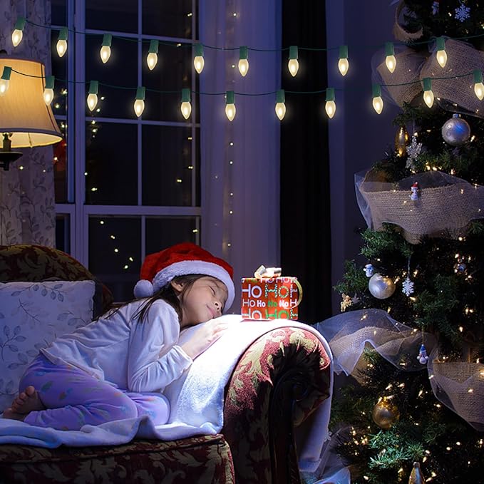 - 🌟 Durable and Long-Lasting: Plug in christmas lights outdoor is made of shatterproof and waterpoof led frosted white bulbs, The soft, frosted finish on the C7 LED bulbs provides a gentle, ambient glow that's perfect for creating an enchanting atmosphere. Long lifespan up to 30,000 hours. led frosted white patio lights suitable for both indoor and outdoor use, our C7 LED string lights are built to withstand the elements, making them a durable choice for year-round decoration.