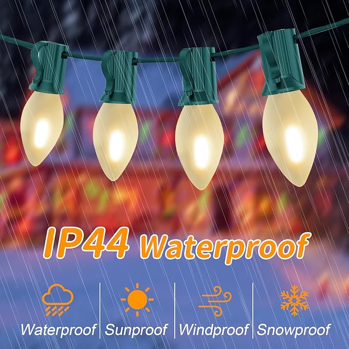 - Creative Christmas decorations - The combination of green silk thread with white ceramic incandescent bulbs perfectly sets off a retro romantic atmosphere that is more vibrant in winter. Perfect for decorating your Christmas, holiday, winter, store, Christmas tree, roof, eaves, backyard, garden, patio, walls, gates, yard, Windows, parties and every occasion before Christmas.