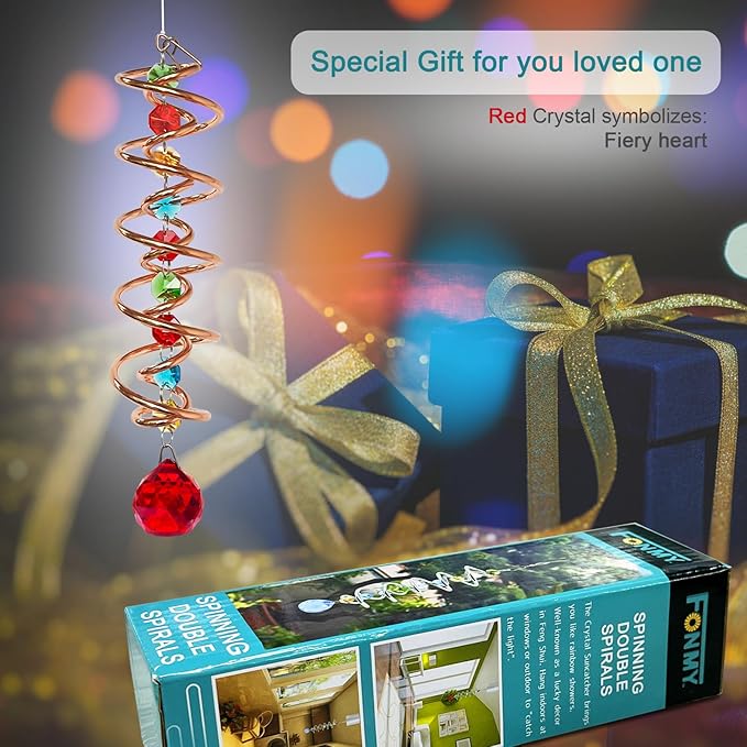 - 【PREMIUM CRYSTAL SUNCATCHER】The spiral with crystal is a special sun catcher rainbow maker, it’s Super Sparkly under sunshine. You can also add a motor(not include) to let the spiral to spin ,while spiral tail rotating (it can’t spin by itself.), the crystal ball seems to move up and down like floating and dancing in air, presents the magical visual illusion.