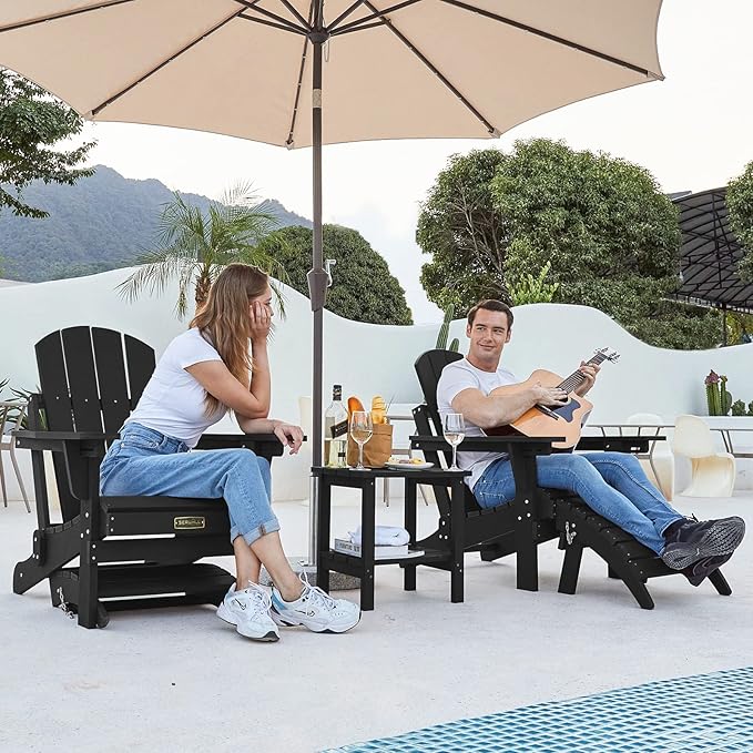 SERWALL Folding Adirondack Chair Footrest Set of 2, Adirondack Ottomans Without Assembly, Black