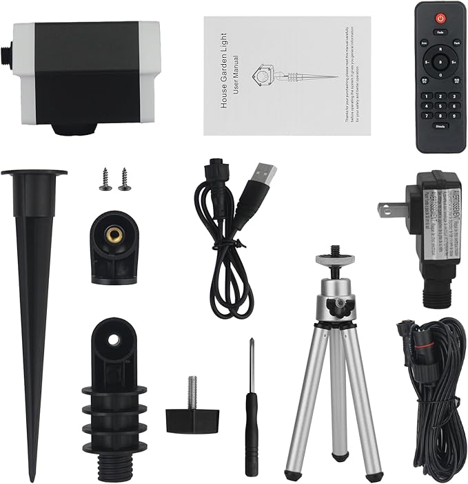- 【Easy to Install】Just plug and play. Equipped with stand and tripod for outdoor and indoor, can also adjust the angle of projection to obtain the best projection effect. Packed with USB power cable, can be directly plugged into the power bank, convenient for outdoor use.
