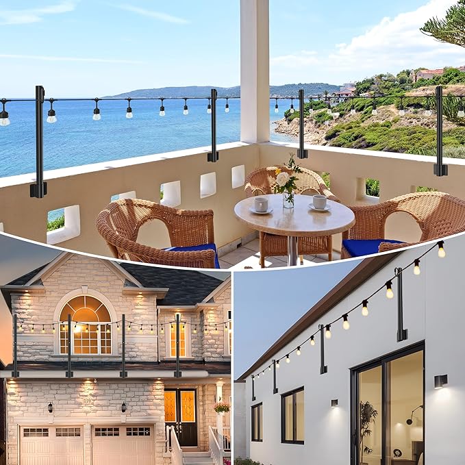 - Superior Quality: Suchtale Hanging String Light Poles showcase a top-tier steel build coated in Waterproof and rust-proof black coating, guaranteeing remarkable protection against rust and corrosion. The metal pole is reinforced, enhancing its durability with a 0.98" diameter and 1.3mm thickness, boosting its load-bearing ability and extending its lifespan. It stands steadfast against diverse weather conditions, maintaining its resilience even in the presence of strong winds or storms.