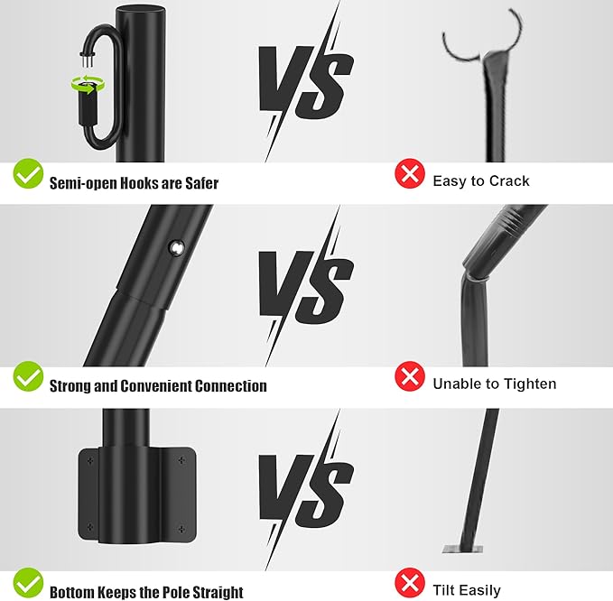 - Superior Quality: Suchtale Hanging String Light Poles showcase a top-tier steel build coated in Waterproof and rust-proof black coating, guaranteeing remarkable protection against rust and corrosion. The metal pole is reinforced, enhancing its durability with a 0.98" diameter and 1.3mm thickness, boosting its load-bearing ability and extending its lifespan. It stands steadfast against diverse weather conditions, maintaining its resilience even in the presence of strong winds or storms.