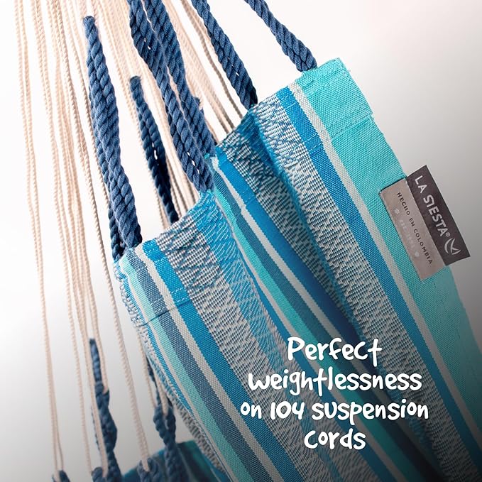 LA SIESTA - Large Comfort Habana Cotton Hammock & Romano Steel Stand - Indoor Outdoor Hanging Chair Swing for Bedroom Porch Balcony - Boho Hanging Chair - Azure
