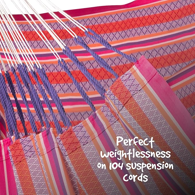 LA SIESTA® - Large Comfort Habana Cotton Hammock Chair & Romano Steel Stand - Hanging Hammock Chair w/Stand - Indoor Outdoor Hammock Chair Swing Bedroom Porch Balcony - Boho Hanging Chair - Flamingo