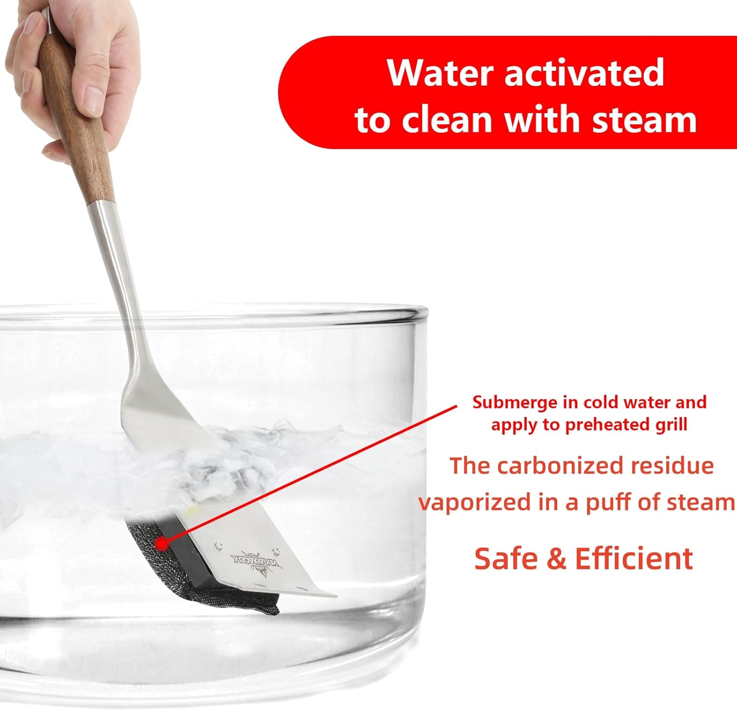 - 【Works on any type of Grill and Griddle】Steam Grill Brush is safe to use on any type of grill,Flat Tops Griddles, including charcoal, gas, porcelain, ceramic, cast iron or stainless steel grills.