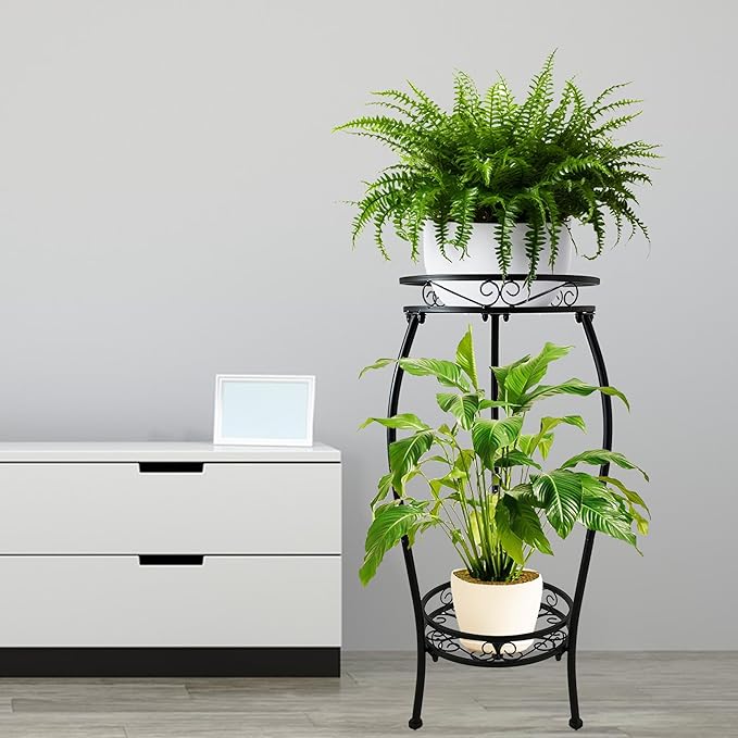 - CLASSIC FLOWER PATTERN – This 2 tier plant stand conformation is classic flowers pattern, cute and beatiful flower pot stand is a decoration itself, could blend well with your furniture style, improve the decor of your living room, bedroom, garden, office, balcony, Patio, Corner and more.