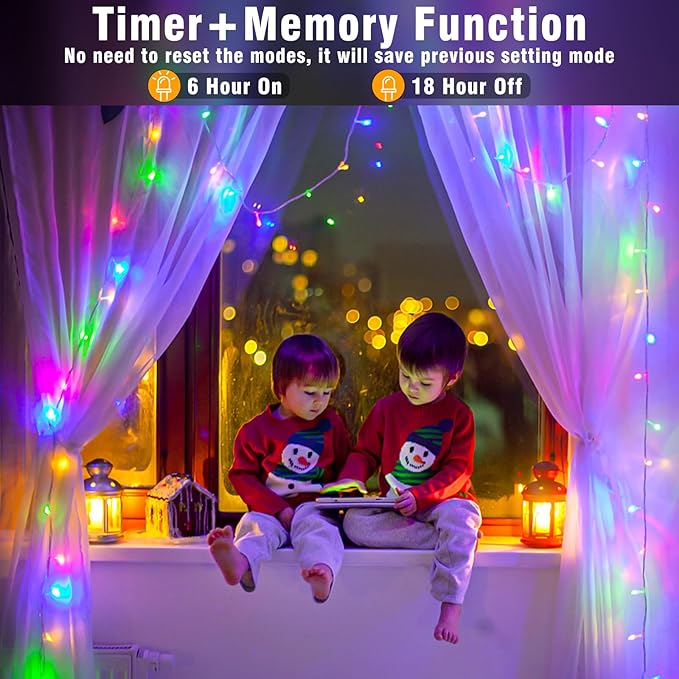 - Timer&Memory Function: Press and hold the button of the plug for 3s until the green light on, then the timer function starts, 6 hours on and 18 hours off. Twinkle fairy lights built in memory chip, the memory function will retains the mode you last set for next time.