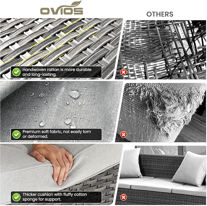 - Premium Wicker Rattan: Made of high-quality, weather-resistant PE rattan, and designed with a classic natural rattan look, all-weather sofa made of sturdy rust-resistant steel construction, providing strong support and balance for the patio seats