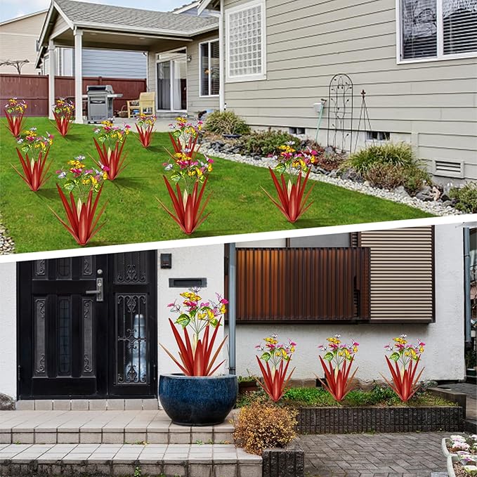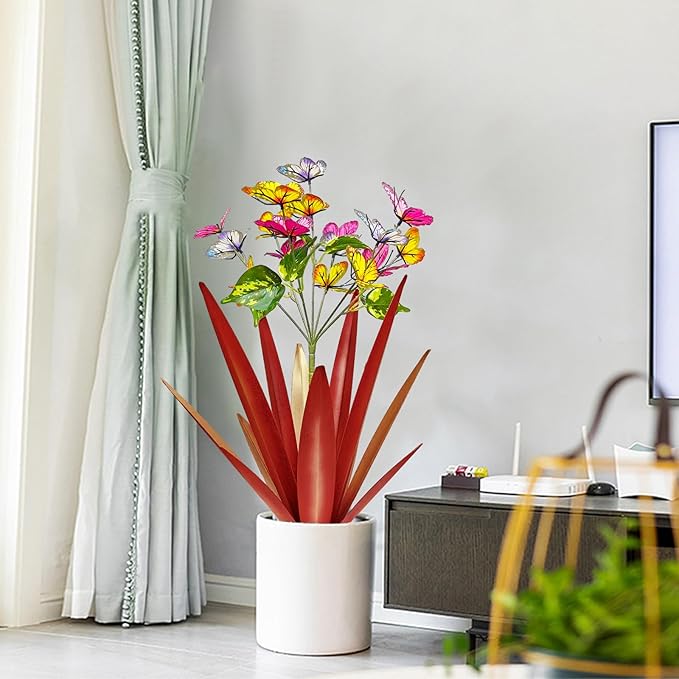 Garden Outdoor Butterfly Enlarge Thickened Wind Resistant Metal Agave Garden Art Metal Plant Country Sculpture Statue Decorations Ornaments Artificial Waterproof Butterflies(red 3pcs)
