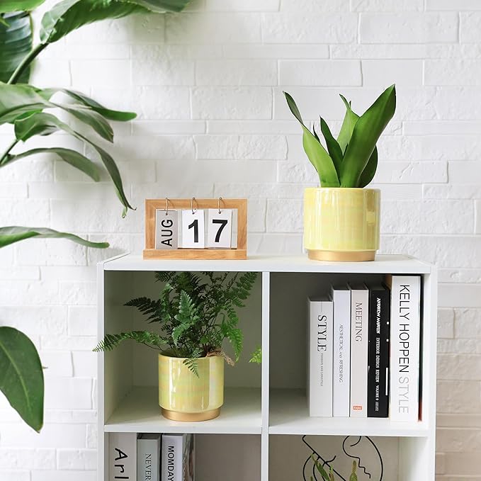 - Rainbow Pearlescent Glazed Design With Drain Holes: The rich color of this ceramic flower pot is covered a rainbowl look. Deep planting space promotes root growth to keep plants healthy. Large drain holes are good for draining, it is suitable for orchids, succulents, cacti, other flowers and green plants, perfect for home decoration.