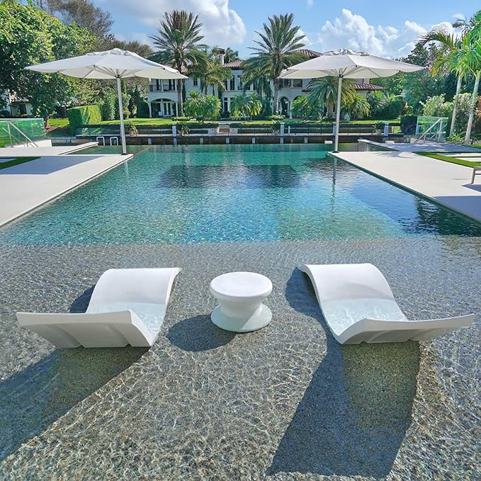 - ALL WEATHER DURABILITY - Made with UV20 resin, Ledge in pool lounge chaises and tables are built to withstand sun, rain, wind and every other seasonal environment for 10+ years. Stackable, but not necessary to store as the seasons change. Keep in your pool for that outdoor oasis feel, all year round.