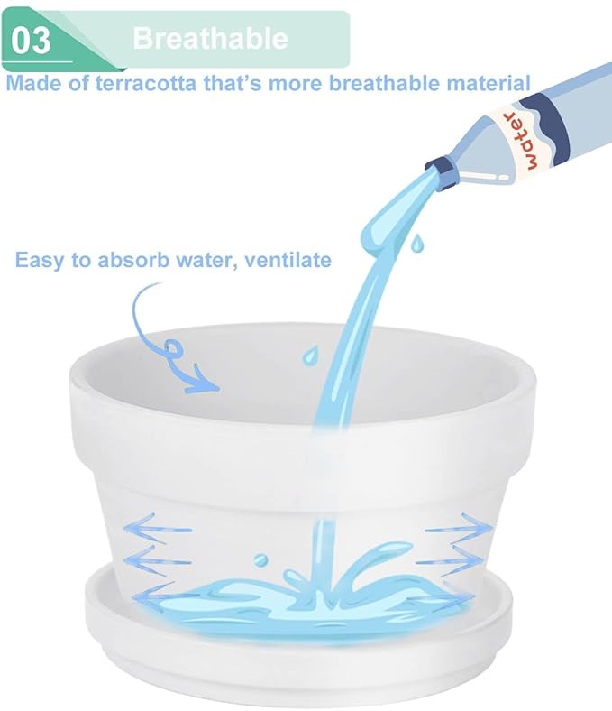 - Quality Materials: Terra cotta pots Making from high-quality clay through high-temperature baking, the walls of the pots draw the water out of the soil to help the soil dry quicker.