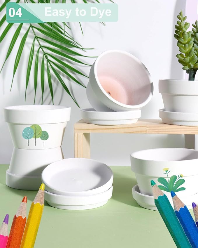 - Saucer&Drainage: Package included 6pcs terra cotta saucer to prevent dust and water from falling out of the drain, to keep the interior clean and to increase the beauty of the room the drainage outlet can prevent water accumulation and extend the life of the plant.