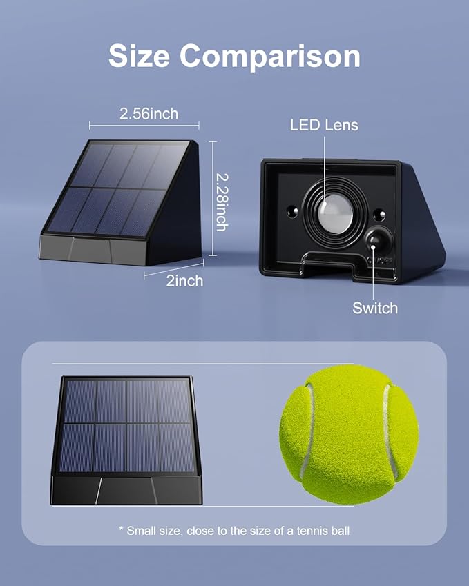 - Mini Design, Small Size, Massive Power: The small solar lights outdoor are carefully designed, only 2*2.56*2.28 inch, approximately the size of a baseball, to achieve maximum functionality in a compact form. This design philosophy ensures that the lights enhance your outdoor spaces without overwhelming them, providing perfect illumination with an elegant, space-saving footprint.