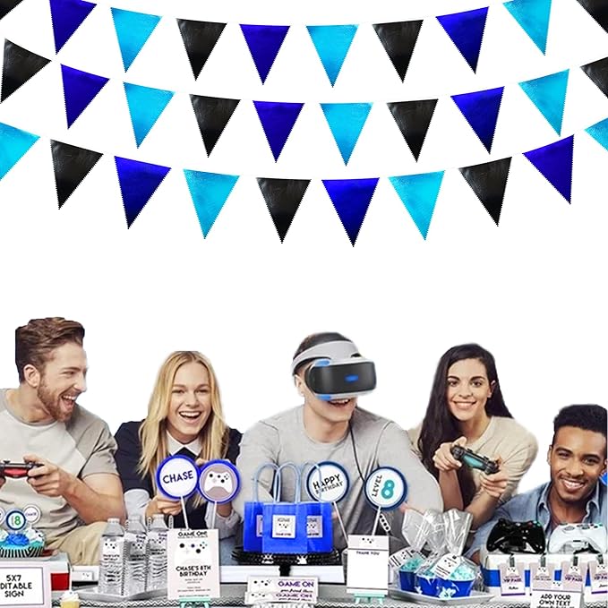 - â«Perfect Choice - This black blue triangle bunting flag are good ideal for any kind of celebration,party,festival,events or other occasion.It can be used for both kids and adults.Such as graduation,video game party,nautical party,birthday,retirement,baby shower,Halloween party,wedding,anniversary,picnics,outdoor activities,family gatherings,holiday party,Christmas,new year party,hen party etc.
