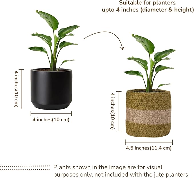 - [FITS 4" POTS - CHECK POT DIAMETER & HEIGHT]: These jute plant baskets are designed to accommodate plant pots up to 4 inches in diameter and height, making them perfect for indoor or balcony use. They are lightweight and portable for easy rearranging. PLEASE CAREFULLY CHECK THE DIAMETER AND HEIGHT OF YOUR POTS BEFORE ORDERING TO ENSURE A PROPER FIT.