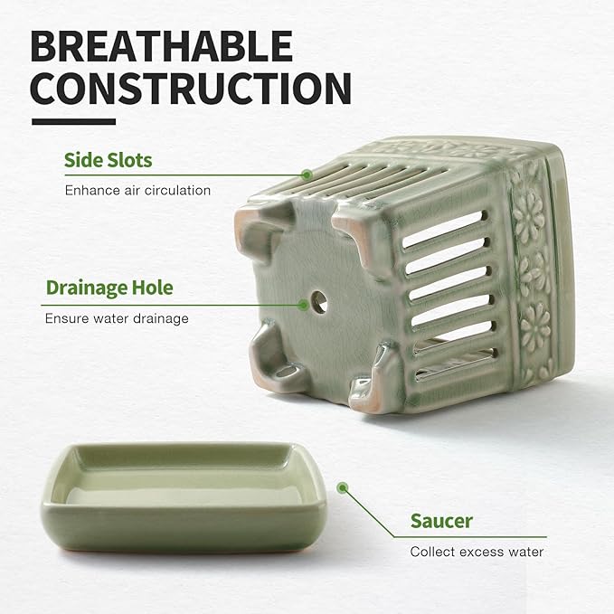 - 【Elegant Design】Unique carved patterns make this orchid pot stand out. Fully glazed with improved air circulation through aeration holes on the front and back.