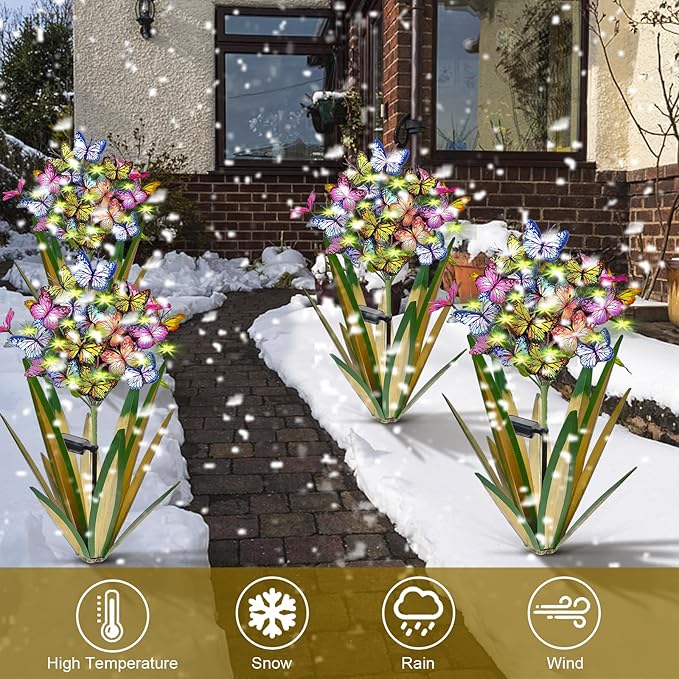 - Vivid Iris metal agave: you will get multiple sets of metal agave garden decorations. With 13 butterflies, they look realistic from a distance during the day and are a great addition to your garden decor. At night, solar it can light up your garden and make your patio porch more beautiful and dynamic.