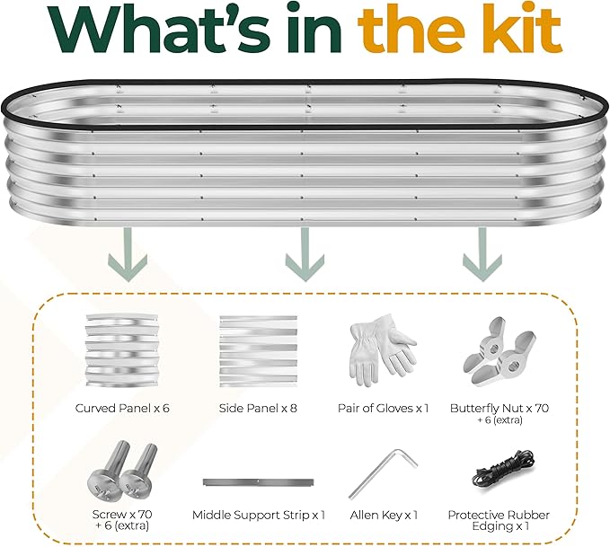 - Lightweight Galvanized Steel - The outdoor raised garden beds are made from lightweight galvanized steel, ensuring exceptional longevity and durability. Also, it prevents it from corrosion and rust, offering a long-lasting gardening solution. Moreover, the middle support strip provided exceptional strength to our lightweight Galvanized Raised Garden Bed.