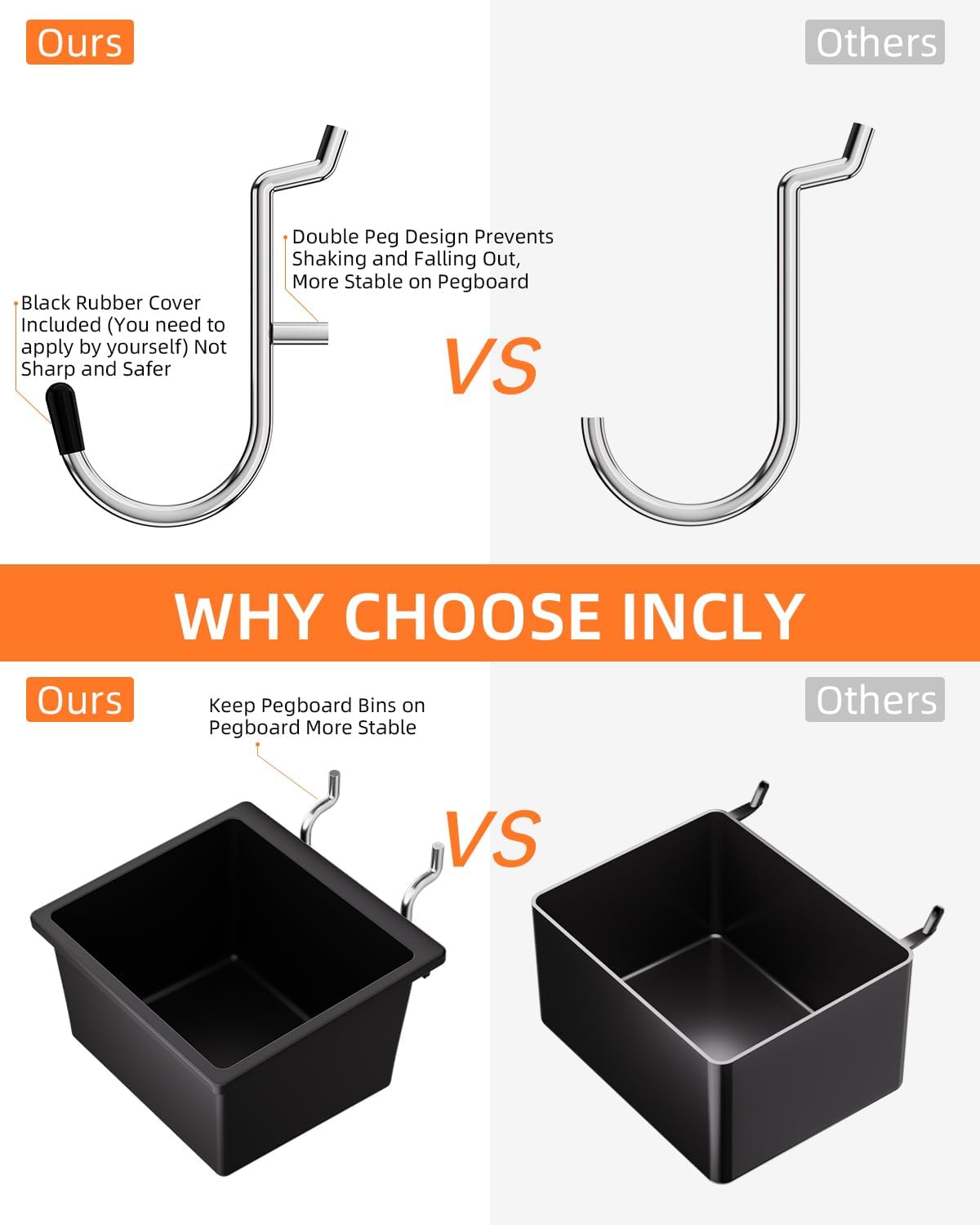 INCLY 158PCS Metal Pegboard Wall Organizer, 48x24 Inch Black Pegboard Panels Tool Organizer Kit with Accessories Hooks and Bins, Peg Board Utility Tool Storage for Garage Workbench Shed