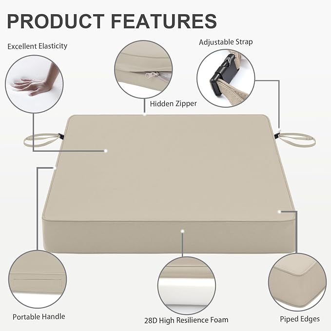 - Luxurious Padding Support - Come with thick quality sponge, super soft and comfortable with excellent elasticity supporting and long-lasting recovery ability, hard seating surfaces lead to pressure points in your lower body, with our outdoor seat cushions, it cradles your bottom, reducing pain in your lower back, hips, and sciatic nerve.