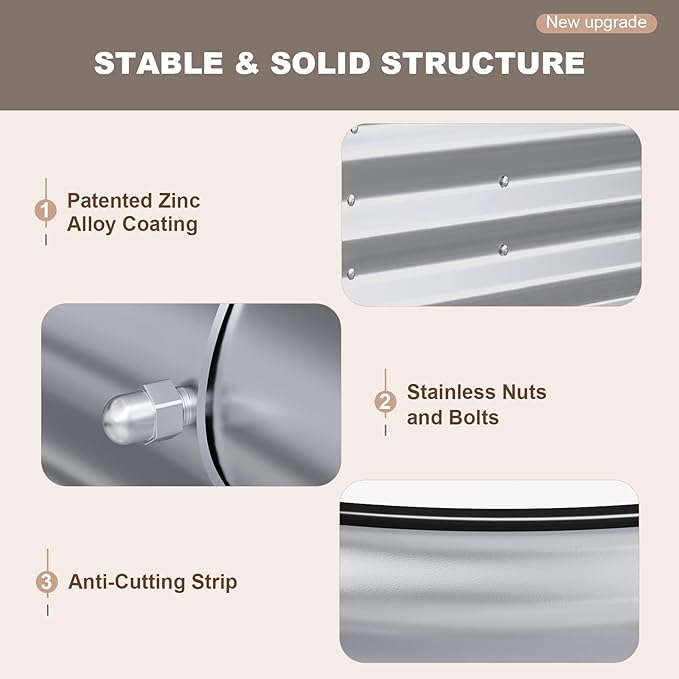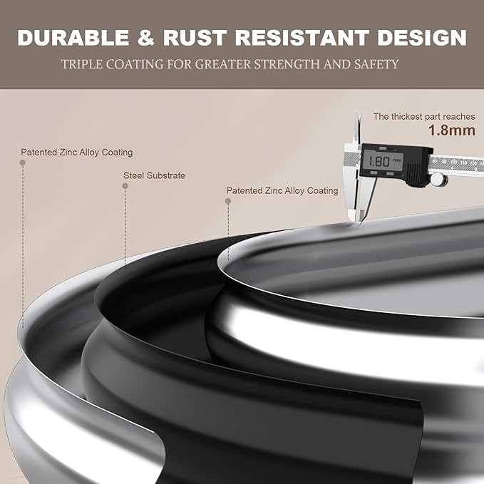 - DURABLE DESIGN: This galvanized raised garden bed, with a Zinc-Aluminum coating, is designed to enhance longevity and withstand various environmental conditions. The coating helps prevent oxidation and increases surface hardness. Its thickened design and oval shape ensure even pressure distribution, making it highly resilient against external forces. Reusable for years