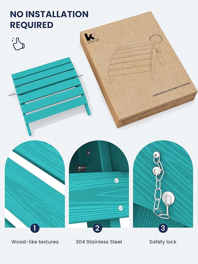 - [Instant Comfort]: No assembly required for the KINGYES Adirondack Footstool. Unbox and enjoy immediate relaxation with this portable and convenient footrest, designed for seamless integration into your outdoor living space.