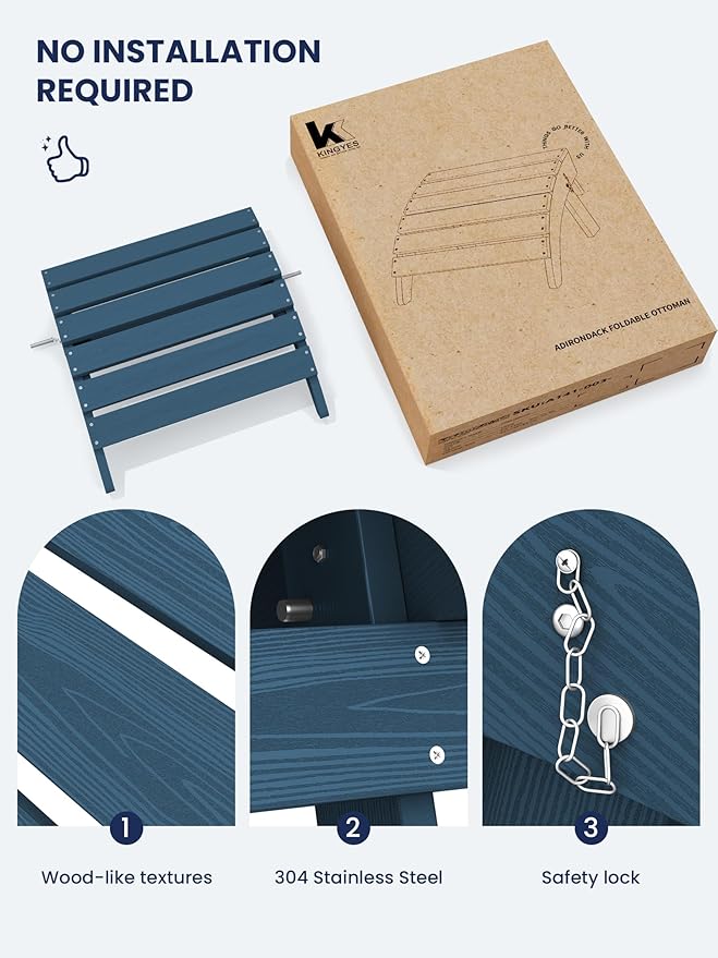 - [Instant Comfort]: No assembly required for the KINGYES Adirondack Footstool. Unbox and enjoy immediate relaxation with this portable and convenient footrest, designed for seamless integration into your outdoor living space.