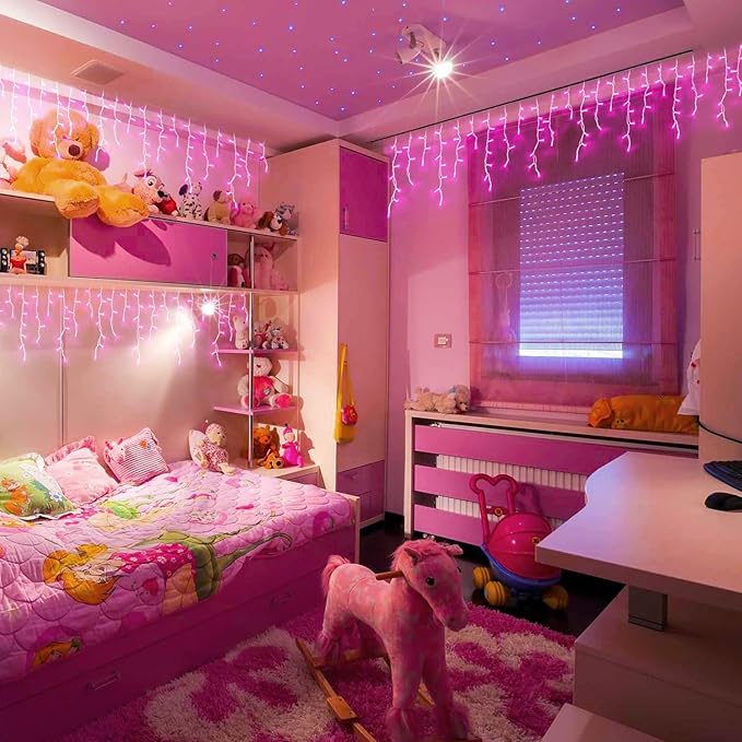 - 【Package Includes】1x 400 LED Pink connectable Icicle Lights, 1x Remote Controller, 1x UL-Certified Plug, 1x Manual. If you have any questions about our product or service, please don't hesitate to contact us. We are committed to providing the best assistance within 24 hours.