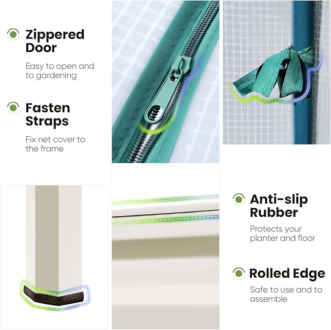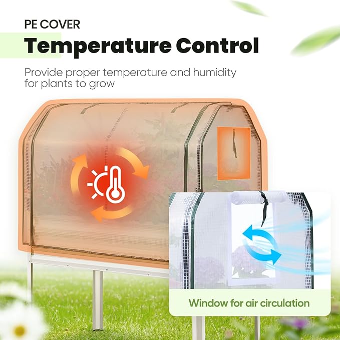 - 【Extending the Growing Season】Raised garden bed with cover allows plants to thrive during the winter and spring. Equipped with zippered doors for easy access, you can tend to your plants with great convenience. Featuring 2 mesh windows, they ensure proper air circulation while also protecting your plants from birds and other small animals.