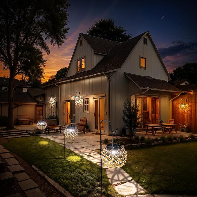 - Waterproof and Durable: Outdoor lanterns light and durable, adopts IP55 waterproof grade and and durable hemp rope, so there is no need to worry about its adverse environment. Its charming openwork pattern and bright light illuminate your patio in a special way, providing a gentle and romantic atmosphere for your garden.