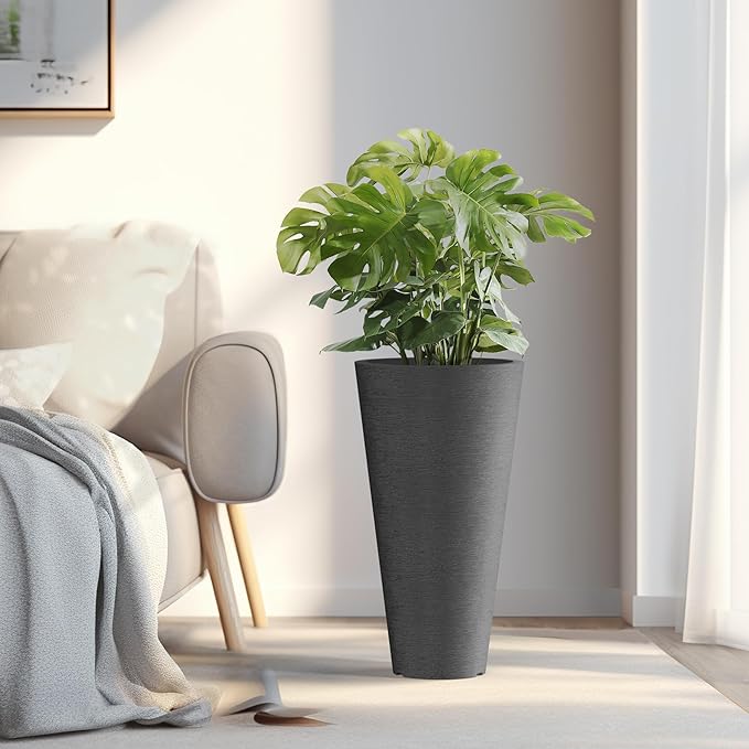 - Premium Tall Planters - Meticulously crafted with durable construction and superior workmanship, our planters are made from high-quality plastic, ensuring longevity, weather-resistance, and color retention. Whether utilized indoors or outdoors, these tall round planters are suitable for all seasons.