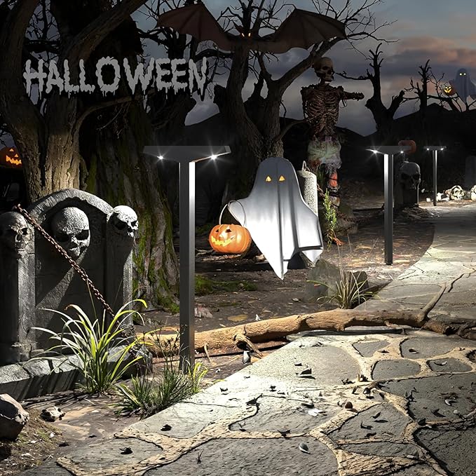 JSOT Solar Lights Outdoor 4 Pack, Solar-Powered Landscape Lighting for Outside, Perfect IP65 Waterproof Solar Pathway Lights for Backyard, Lawn, Driveway, Walkway, Garden Decorative. (Cool White)