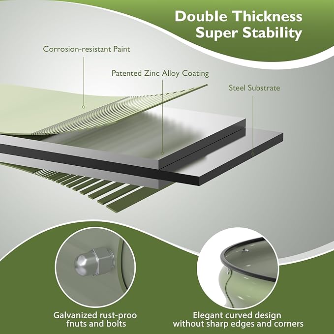 - Upgraded Durability and Structure: The thickness of this galvanized corrugated steel garden bed reaches 0.8mm, and the thickest part can reach 1.8mm, Multi-screw reinforcement prevents deformation and can be reused for many years