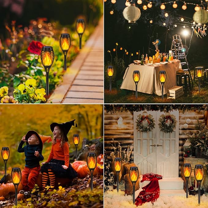 - Gorgeous Outside Decorations: Mini-Size 12LED solar lights for outside flicker a dancing flame, a festive decoration and romantic landscape for outside decor, such as garden, yard, pathway, patio and barbecue, home party, wedding, which could create a gorgeous and attractive campfire ambience.