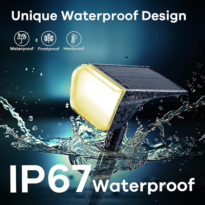- All-Weather Durability: Solar lights are outdoor waterproof and built with high-quality ABS & PC materials, these solar spotlights withstand extreme temperatures (-20°C to 45°C). Waterproof, heatproof, and freezeproof, they remain clear and fog-free for reliable outdoor performance year-round