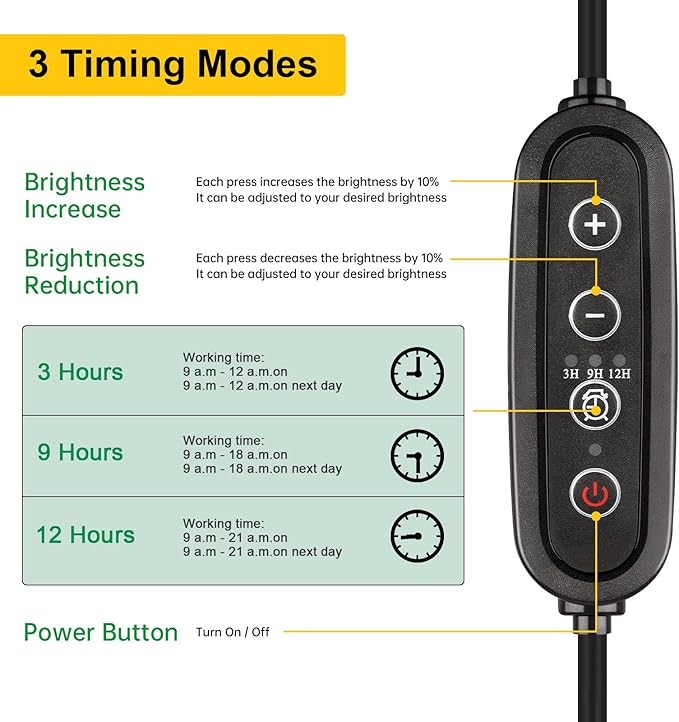 - AUTO ON/OFF TIMER: The auto cycle memory timer function has 3/6/9H modes for you to choose from, it's like keeping the sun on a schedule, even if you forget or are traveling, these grow light strips will take care of your plants every day, perfect for busy lifestyles.