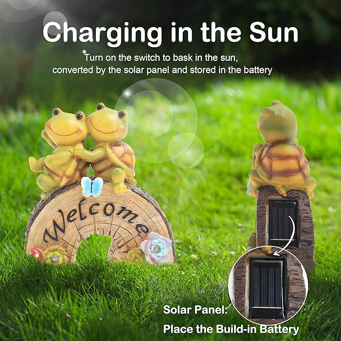- 【Easy to Use】Renewable and clean energy - Convert solar energy into electricity during the day. Switch the the solar panel on the turtle statue to "ON", and the turtle figurine light will auto-charge during the day, auto light up at night