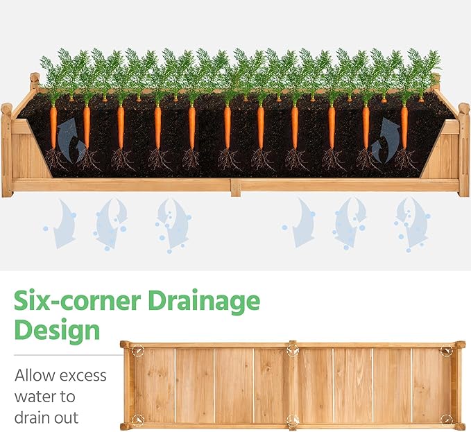 - SINGLE-PIECE SIDE PLATE -- Comparing with other planting beds with several small wooden plates at the side, our planting raised bed has a whole side board at each side. It is fixed firmly without leakage of soil. The entire structure is very stable, and the installation is effortless